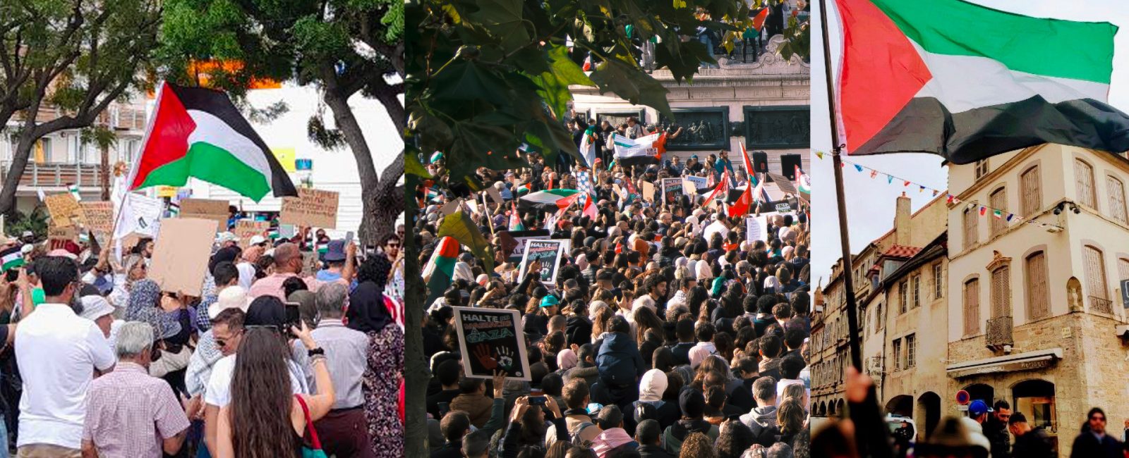 En France, des manifestations, actions se démultiplient sous toutes les formes possibles pour exiger la fin du massacre,